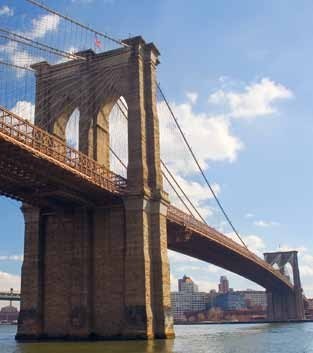 Cầu Brooklyn, New York, Mỹ (1883). Đây là cây cầu treo dài nhất thế giới cho đến năm 1903, và là cây cầu treo bằng dây thép đầu tiên |